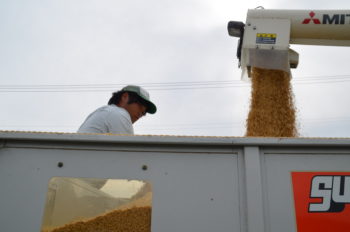 We use the machinery, “combine”. It is similar to harvesting wheat.